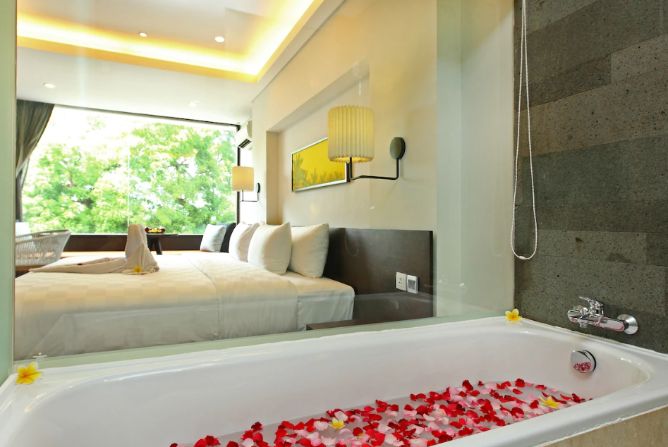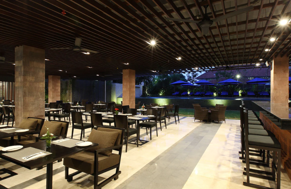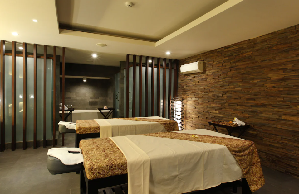 But your luxurious escape extends beyond your room. Indulge in refreshing dips at one of the two outdoor pools, including a stunning rooftop infinity pool boasting breathtaking sunset vistas. For those seeking rejuvenation, the on-site Liang Spa provides a haven of tranquility with pampering Balinese massages and wellness treatments.